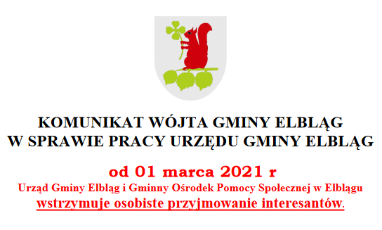 KOMUNIKAT WÓJTA GMINY ELBLĄG W SPRAWIE PRACY URZĘDU GMINY ELBLĄG