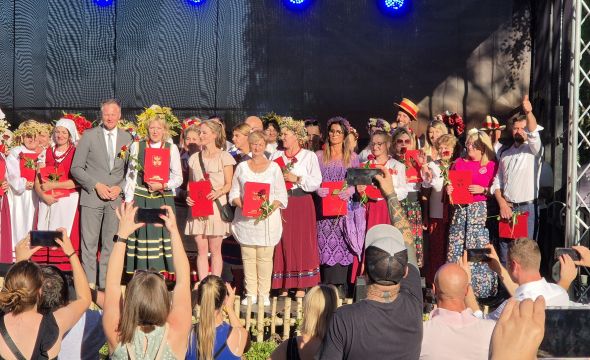 Dnia 21 września 2025 r. na terenie Muzeum Budownictwa Ludowego-Parku Etnograficznego w Olsztynku odbyły się Warmińsko-Mazurskie Dożynki Wojewódzkie. Gospodarzem Święta Plonów był Marszałek Województwa Warmińsko-Mazurskiego Marek Kuchciński, a gościem honorowym Minister Rolnictwa i Rozwoju Wsi Stefan Krajewski. Uroczystości rozpoczął barwny korowód dożynkowy z 44 gmin naszego województwa. Gminę Elbląg z wieńcem dożynkowym reprezentowało Sołectwo Tropy Elbląskie z Panią Sołtys Grażyną Kordek na czele. To wydarzenie przepełnione muzyką i atmosferą wspólnego świętowania przyciągnęło wielu gości z całego regionu. Na uczestników czekały stoiska twórców ludowych, z wyrobami rękodzieła oraz Kół Gospodyń Wiejskich z lokalnymi przysmakami. Z Gminy Elbląg swoje stoisko zaprezentowało Koło Gospodyń Wiejskich „Nasze Tropy” z Sołectwa Tropy Elbląskie. W oficjalnej części uroczystości Marszałek Województwa Marek Kuchciński skierował słowa uznania do rolników i podziękował za ciężką pracę w rolnictwie. Na wniosek Warmińsko-Mazurskiej Izby Rolniczej wręczono odznaki honorowe „Zasłużony dla rolnictwa” za zasługi dla województwa warmińsko-mazurskiego w dziedzinie rolnictwa, rozwoju wsi i rynków rolnych nadane przez Ministra Rolnictwa i Rozwoju Wsi . Osobą wyróżnioną z Gminy Elbląg została Pani Monika Mańkowska Radna Gminy Elbląg i członkini Warmińsko-Mazurskiej Izby Rolniczej Powiatu Elbląskiego. Serdecznie gratulujemy. Święto Plonów to także konkursy na najpiękniejszy wieniec dożynkowy i najładniejsze stoisko Kół Gospodyń Wiejskich. W rywalizacji na najładniejszy wieniec wzięły udział 44 gminy z województwa warmińsko-mazurskiego. Oceniono również 11 stoisk dożynkowych. W tegorocznej edycji konkursów Sołectwo Tropy Elbląskie otrzymało wyróżnienie za wieniec dożynkowy oraz wyróżnienie za stoisko dla Koła Gospodyń Wiejskich „Nasze Tropy”. Gratulacje wyróżnionym przedstawicielom Gminy Elbląg złożył osobiście Wójt Gminy Elbląg Zygmunt Tucholski. Za godne reprezentowanie Gminy Elbląg , za wyjątkową atmosferę i mile spędzony czas Sołectwu Tropy Elbląskie i wszystkim uczestniczącym w Warmińsko-Mazurskich Dożynkach Wojewódzkich w Olsztynku Wójt Gminy Elbląg składa serdeczne podziękowanie.