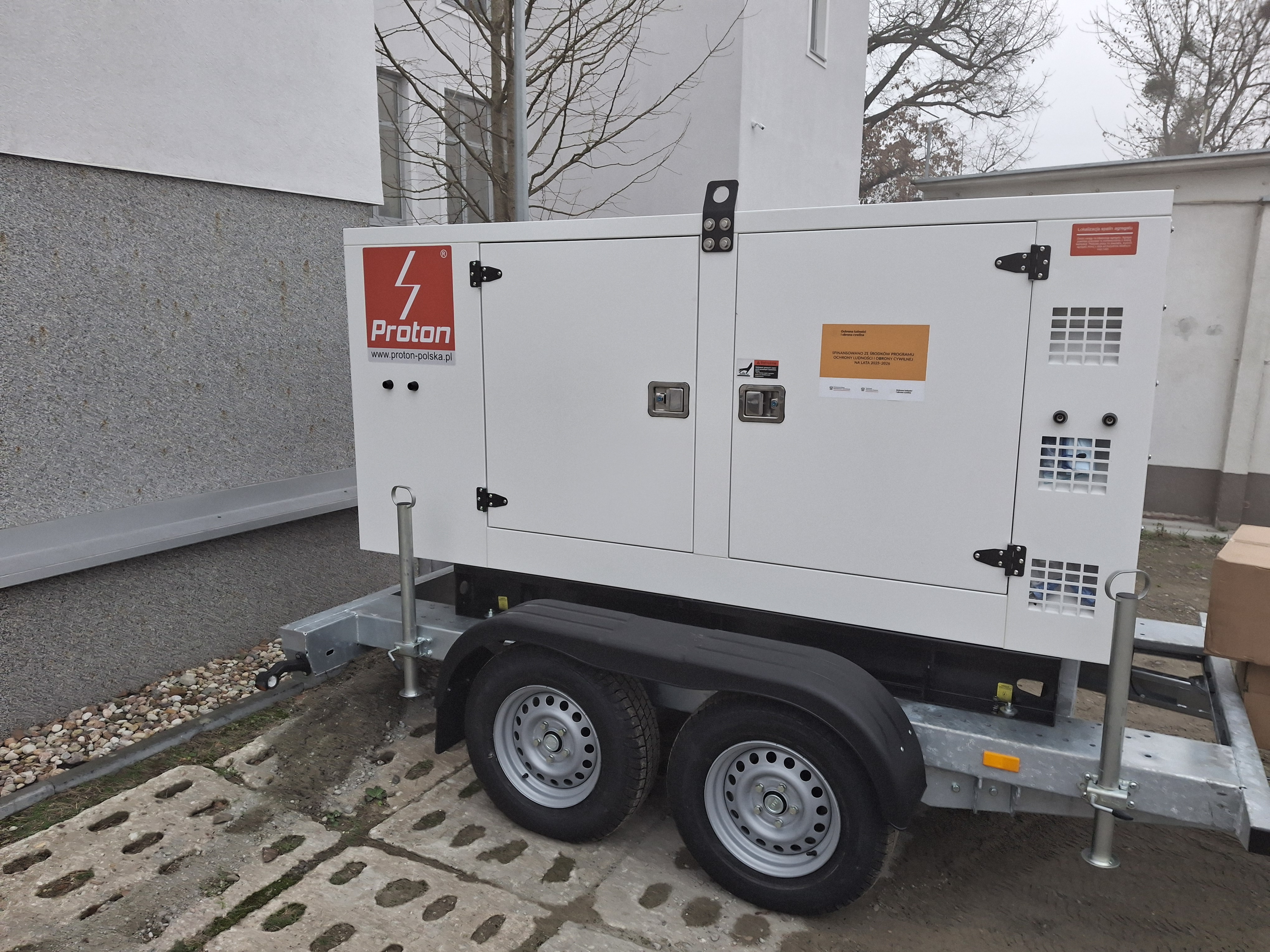 Gmina Elbląg zakupiła dwa agregaty prądotwórcze z serii ZPP o mocy 100 kW i 65 kW na przyczepie oraz osiem sztuk agregatów prądotwórczych o mocy 5 kW. Urządzenia kosztowały 268 447,00 zł. Na zakup w/w agregatów prądotwórczych Gmina otrzymała 90% dofinansowania z środków programu ochrony ludności i obrony cywilnej na lata 2025 – 2026.